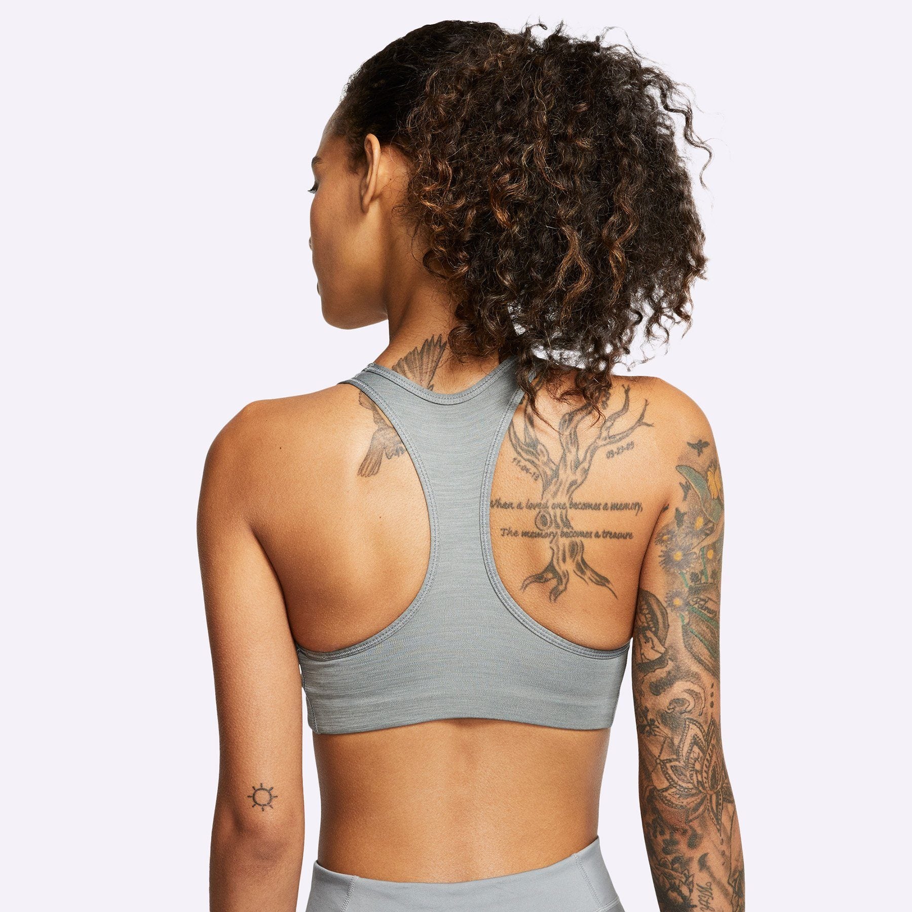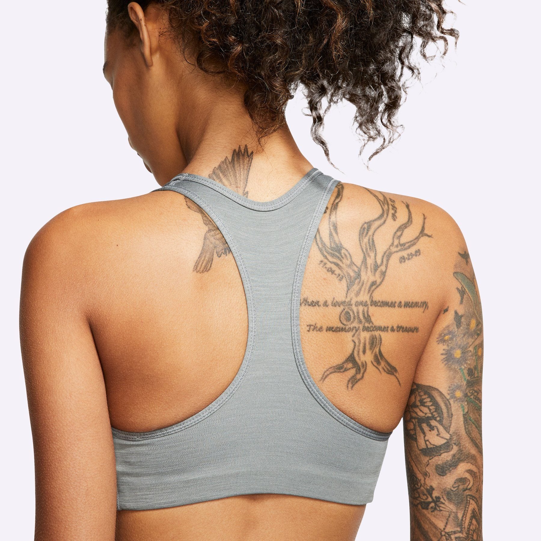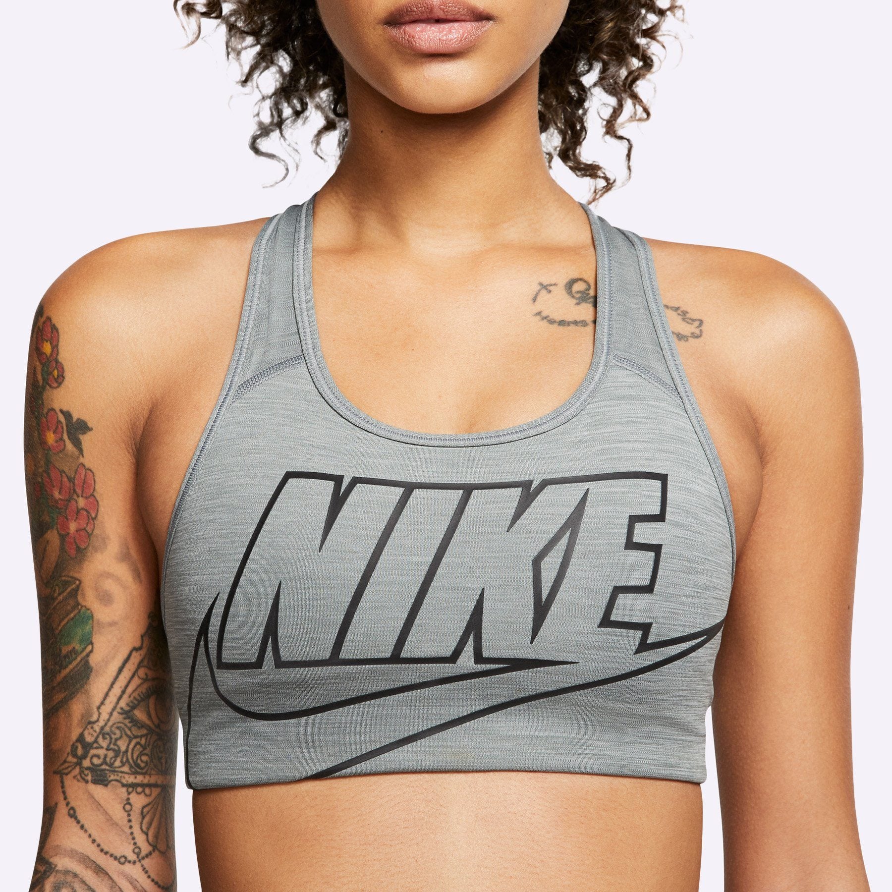 The non-padded Nike Sports Bra combines compressive fabric with sweat-wicking technology to help keep you dry and comfortable during medium-impact activities. A racerback design lets you move naturally when you're getting after it.Features: