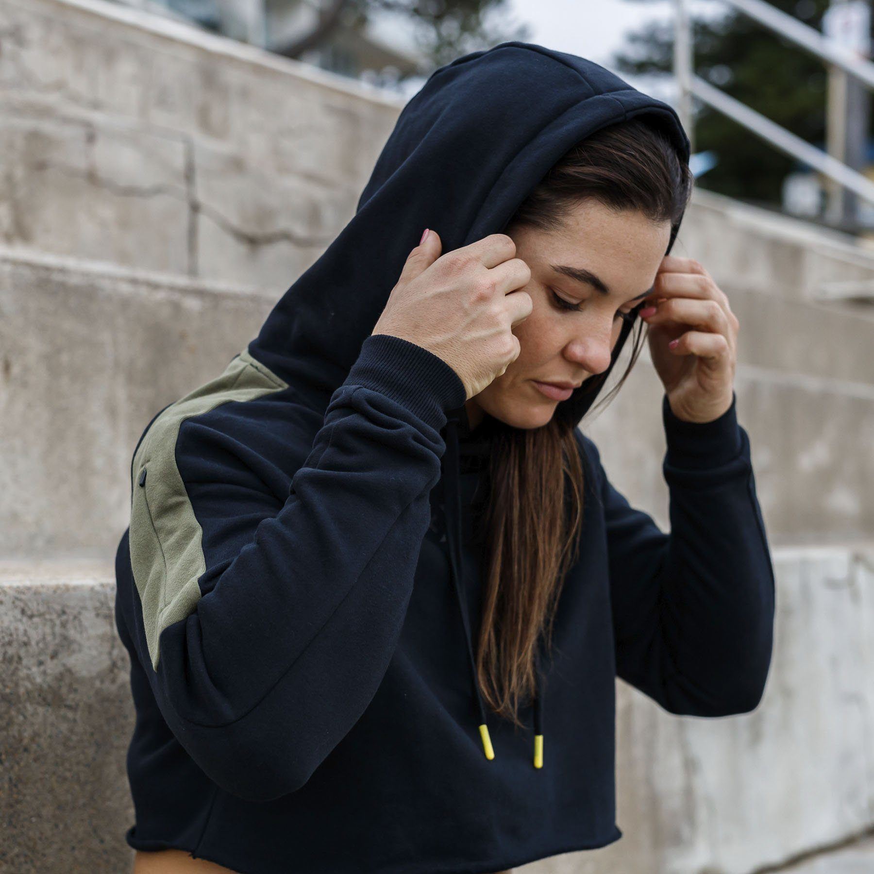 The WOD Life - Women's Wanderer Cropped Hoodie - BLACK/KHAKI